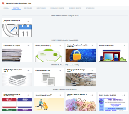 - As the Innovative Product Team makes progress on features, we will move the cards so you can see which phase the feature is in, such as: in planning, in progress and being developed, released into general availability, and if applicable when they are in Beta.